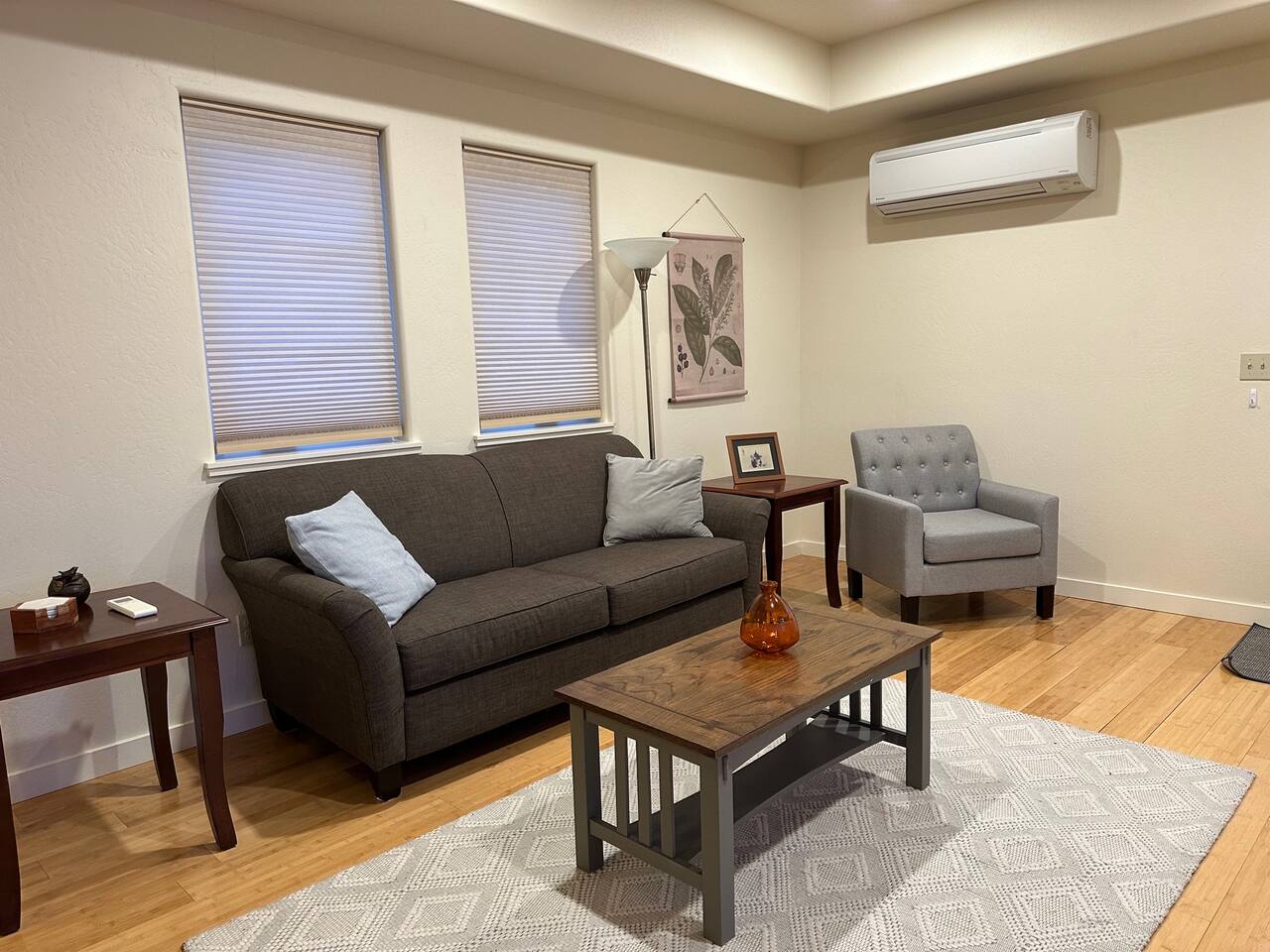 This comfortable carriage house apartment is nestled in a gated castle community that boasts classical gardens, orchards, vineyards, water features, and breathtaking mountain views. The property is located minutes from I-5 and downtown Ashland. Please note that this is a shot gun apartment. You must walk through the bedroom with the king bed to get to the bunk bed bedroom.