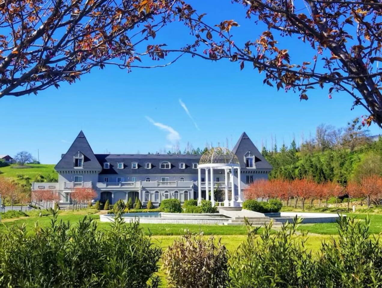 You will have access to the communal chateau sunroom, library, coffee bar, and patio. Explore the vineyard, gardens, orchards, pond pergola, and classical fountain. Please note that you can find the sauna and hot tub facilities to the left of the sunroom by the fountain at the main chateau for communal use and your enjoyment.